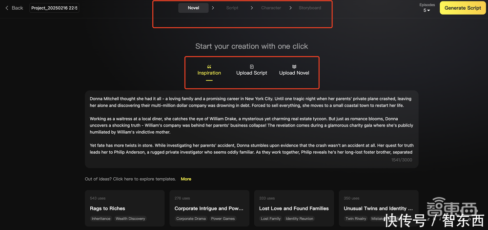 用户可以将短剧灵感、脚本或者小说上传到平台之上,SkyReels就会自动分析内容生成相应脚本以及对应的主要人物角色,不满意的话还可以重新设备声音和角色形象等。最后SkyReels会将不同镜头的脚本进行合成,形成一部完整的短剧,这些过程中用户都可以根据自己的需求随时修改。